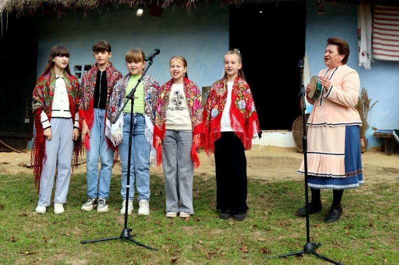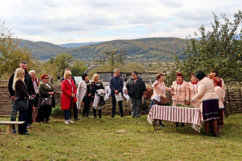 Своїх гостей зустріли завідувач етнографічного сектору «Лемківська садиба» Віталій Рац і колектив «Лемківчанка», який презентував для присутніх обряд «Вінкоплетини».