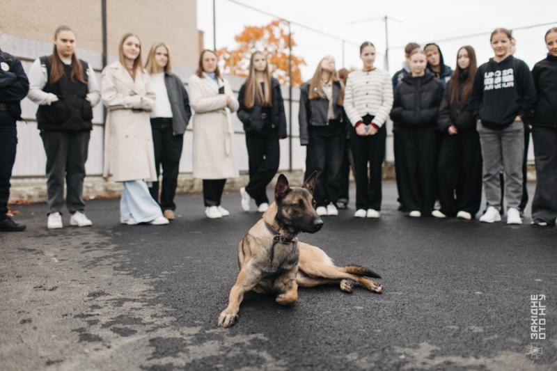 Кінолог Національної гвардії представив бельгійську вівчарку на ім’я Амід, яка миттєво стала улюбленицею школярів. Службова собака слухняно виконувала команди, демонструючи, наскільки важливою є взаємодія між військовим і його чотирилапим напарником.