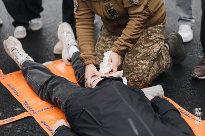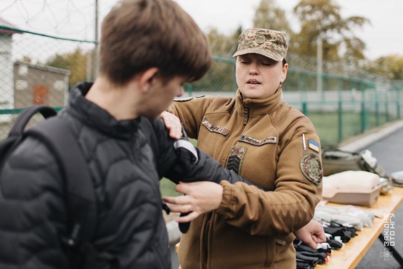Не менш цікавим став блок із тактичної медицини. Інструктори показали, як правильно накладати турнікет, зупиняти кровотечу та фіксувати пов’язки. Учні зосереджено відпрацьовували дії, розуміючи, що ці знання сьогодні рятують життя.