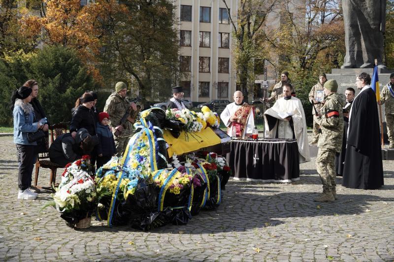Чин похорону відбувся на площі Народній. Провести воїна в останню путь прийшли рідні, секретар міської ради Ігор Чорній, військові, містяни.
