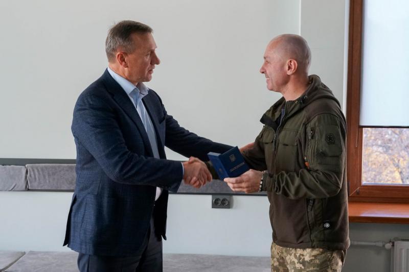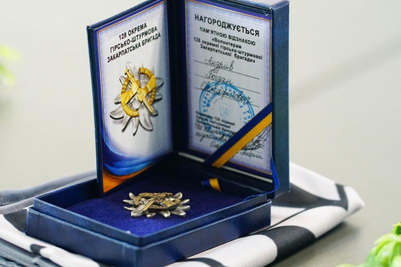 Т.в.о командира бригади, підполковник Олександр Анохін вручив міському голові Богдану Андріїву пам’ятну відзнаку «Волонтерам 128-ї окремої гірсько-штурмової бригади» – як знак вдячності громаді Ужгорода за постійну допомогу, турботу про військових та підтримку підрозділу.
