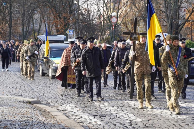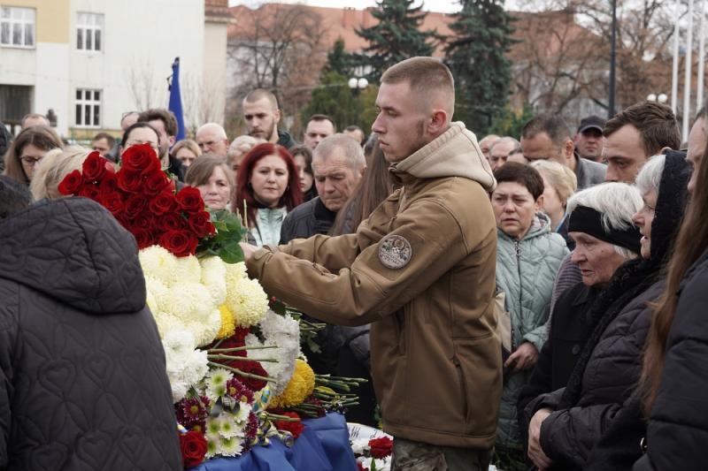 Чин похорону відбувся на площі Народній. Провести воїна в останню путь прийшли рідні, міський голова Богдан Андріїв, друзі, однокласники, знайомі, військові, містяни.