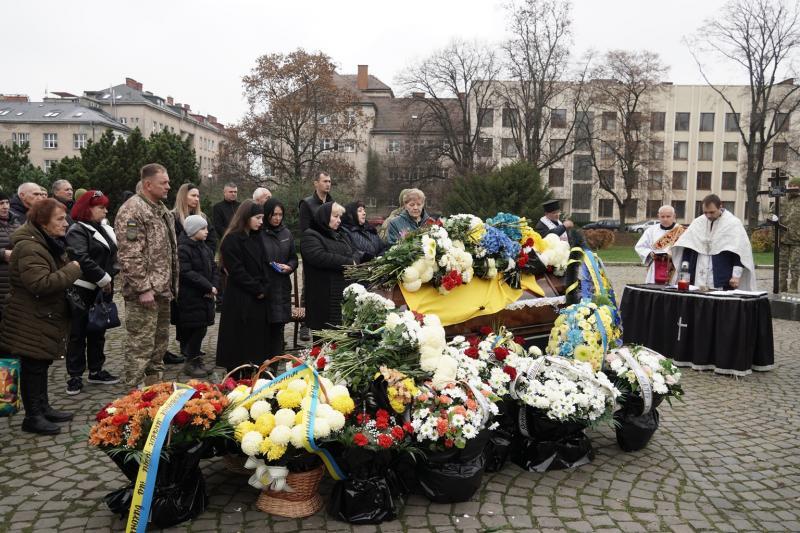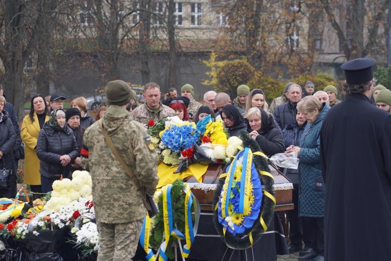 Чин похорону відбувся на площі Народній. Провести воїна в останню путь прийшли рідні, побратими, заступник міського голови Михайло Маргіта, друзі, знайомі, військові, містяни.