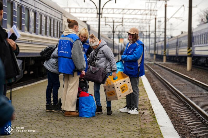 Цього разу евакуаційний потяг доставив у Мукачево три родини з Дніпропетровської області, які залишили свої домівки в пошуках безпеки. Рятувальники, психологи та волонтери зустріли на залізничному вокзалі семеро людей, серед яких — маломобільні громадяни, літні люди та двоє дітей.