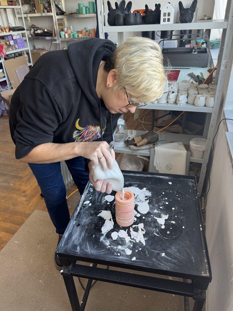 “Це допомагає. Бо насправді, коли я почала в артпросторі чимось займатися, після обстрілів, після того, як у тебе на першому місці безпека, родина, коли ти виїжджаєш і береш лише найнеобхідніше (бо виїжджали ми “на тиждень до кумів пересидіти обстріл")... Мені треба було на ярмарку постояти, щоб зрозуміти, навіщо людям ці свічки, ці прикраси. За цей час я вже побачила, що це у людей викликає усмішку, як вони розслабляються, коли беруть ці вироби в руки, як вони вдихають цей аромат. Відчувається, що це людям дійсно потрібно зараз”.