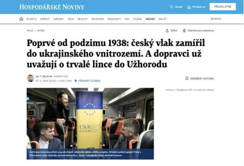 Знаковим є те, що чеська делегація прибула до нашого регіону першим за майже 100 років прямим пасажирським поїздом Ужгород – Прага – Ужгород, який курсує новою євроколією. Це справді історична подія, про яку сьогодні пишуть провідні іноземні ЗМІ.
