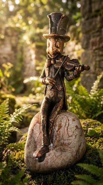 Учора в Ужгороді відкрили чергову міні-скульптуру на честь «Різдвяного цвіркуна». Цвіркун у циліндрі, що грає на скрипці, сидить на камені, під яким розташований дзвіночок. Справа – нотний ряд «Circen?ša Ziemassv?tki». Про це пише Олександр Богданов: