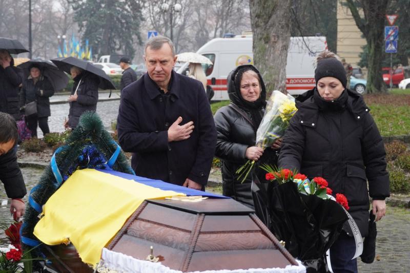 Чин похорону відбувся на площі Народній. Віддати шану полеглому прийшли рідні, друзі, військові, ужгородці, міський голова Богдан Андріїв.