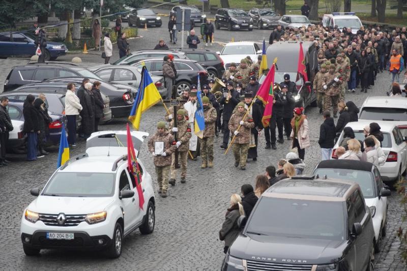 Чин похорону відбувся на площі Народній. Віддати шану полеглому прийшли рідні, друзі, сусіди, військові, ужгородці, міський голова Богдан Андріїв.