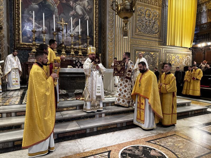 Також 17 грудня у Базиліці Святого Петра у Ватикані відбулася Архієрейська Божественна Літургія, яку очолив Преосвященний Владика Теодор Мацапула. Богослужіння ппровели з нагоди ювілейного паломництва, у якому беруть участь наші семінаристи з України, Австрії, Німеччини та Італії, а також молодь та вірники нашої єпархії.