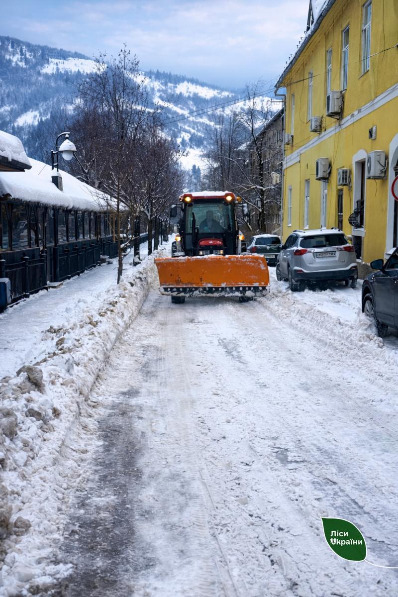 Через складний рельєф і велику кількість снігу наявна в громадах техніка не всюди справляється з навантаженням. Тож лісівники оперативно залучили трактори та спеціальну техніку, аби підтримати громади у критичний момент. У першу чергу лісівники допомагають органам місцевого самоврядування, однак паралельно проводять очищення від снігу і лісових доріг.