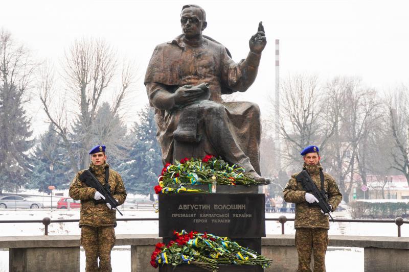 Із нагоди державного свята зранку в Ужгороді біля пам?ятника Героя України, президента Карпатської України Августина Волошина зібралися керівництво області та міста, військові, духовенство, дипломати, містяни…