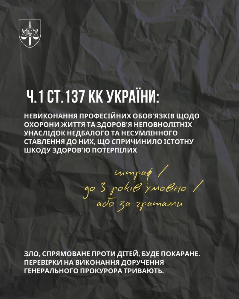 Захист прав і безпеки дітей є безумовним пріоритетом держави. Кожен випадок замовчування, байдужості або службової бездіяльності щодо неповнолітніх отримає принципову та невідворотну правову оцінку.