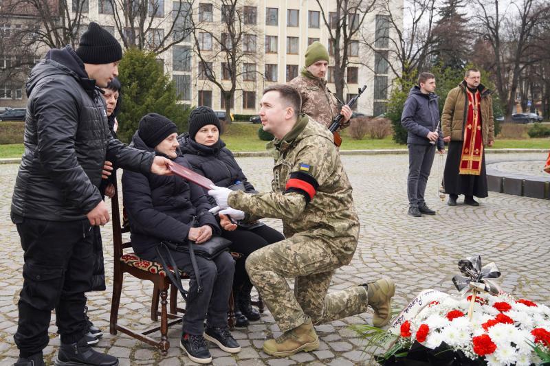Чин похорону відбувся на площі Народній. Віддати останню шану полеглому прийшли рідні й близькі, військові, мешканці міста, міський голова Ужгорода Богдан Андріїв.