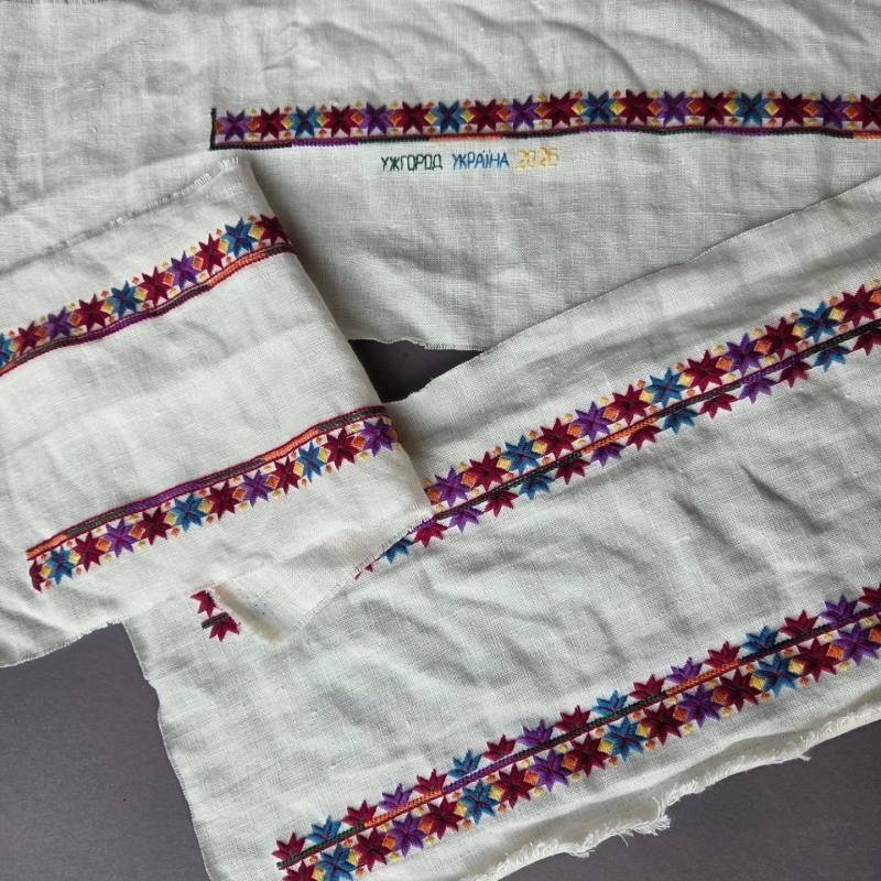 Для нас, Закарпатського музею народної архітектури та побуту, особливо важливо зазначити: ми дотичні до цієї історії. Саме з фондів скансену був використаний автентичний фрагмент вишивки — зразок, який допоміг відтворити все максимально правдиво, з точним добором орнаменту та відтінків. Відтінки ниток підбирали відповідно до експоната, допомагали у цьому директор музею Василь Коцан та завідувачка відділу експозиції та науково-дослідної роботи Вікторія Симкович. Найприємніше, за словами пані Марії, було вишивати на внутрішній стороні комірця «Ужгород Україна 2026».