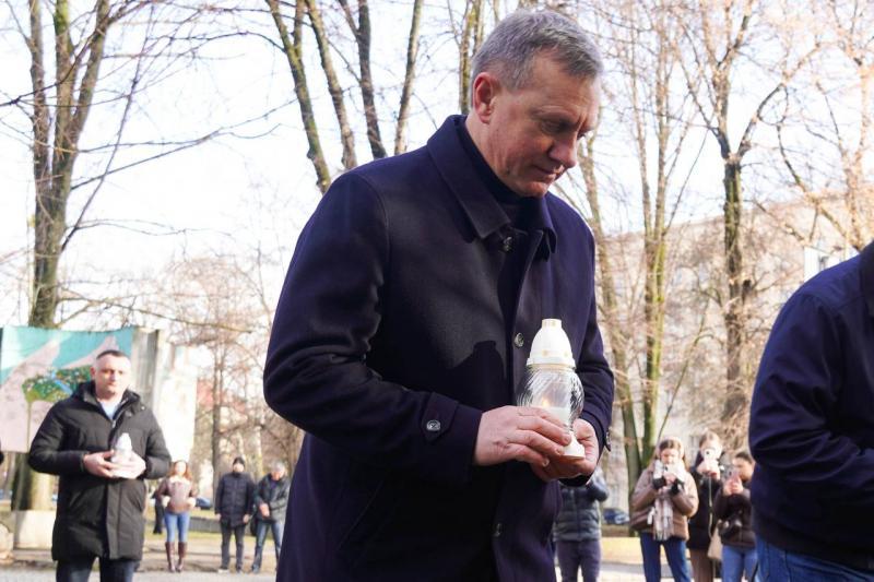 Нині в Ужгороді біля пам'ятного знаку борцям за свободу і незалежність України зібралися керівництво міста та області, правоохоронних органів, ветеранської спільноти, громадськість, студентство, щоб запалити свічки і згадати людей, які загинули, бо мирно стояли вдень і вночі в середмісті столиці й висловлювали свою державницьку позицію.