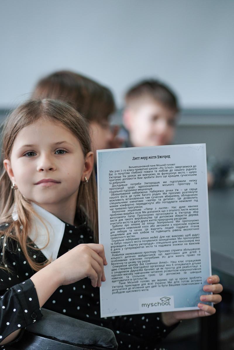 Особливо вразило, наскільки серйозними й глибокими були дитячі запитання. Юні ужгородці говорили про інклюзивні дитячі майданчики та рівний доступ до дозвілля для всіх дітей, про висаджування дерев і збереження зелених зон, ремонт доріг, будівництво громадських вбиралень, підтримку людей похилого віку та ще багато інших тем.