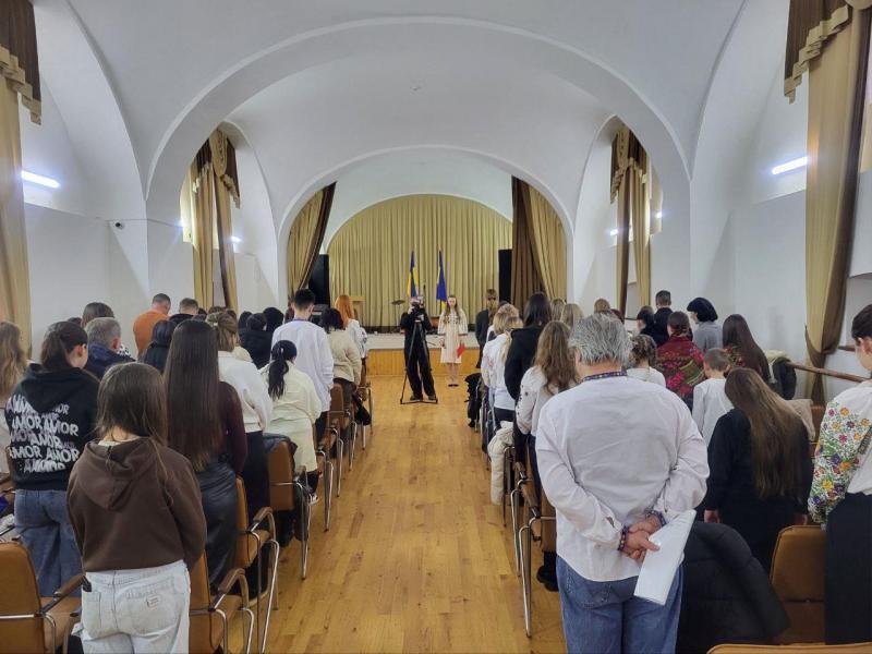 Розпочали захід зі вшанування хвилиною мовчання Героїв і Героїнь, полеглих за Україну, а також мирних мешканців, які загинули внаслідок російської збройної агресії.