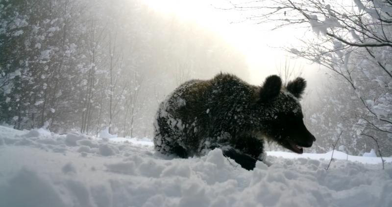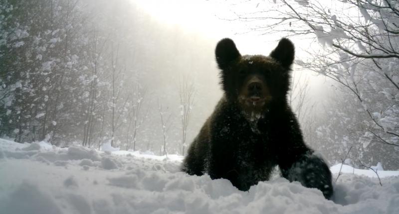 В Ужанському Нацпарку фотопастки зафіксували ведмедицю з малятами, які не сплять узимку