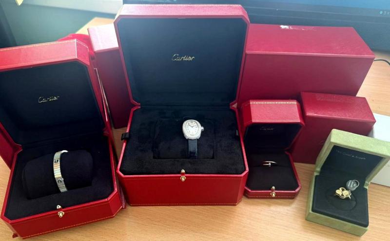 Серед дороговартістного товару: 5 дамських сумочок торговельних марок «Gucci», «CHANEL», «DIOR», «CELINE» та «LOUIS VUITTON», вироблені в Італії та Франції. А ще на додачу - шовкова хустка від «CELINE», жіноче взуття (капці та кросівки) від «HERMES» та ювелірні вироби: 2 каблучки, браслет та годинник від «Van Cleef & Arpels» та «CARTIER».