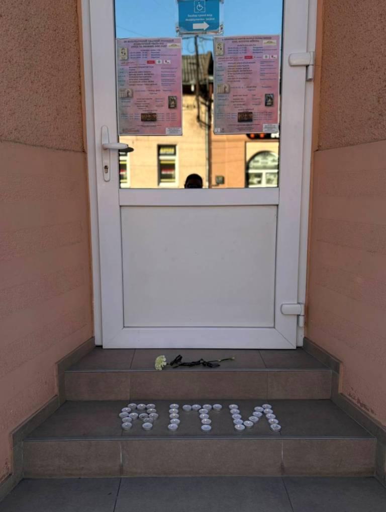 Тут працівники закладів, небайдужі краяни, а також маріупольці, які нині мешкають на Закарпатті, вшановували пам’ять невинних жертв Росії, запалювали лампадки, приносили іграшки та квіти. Писали або викладали свічками слово «ДІТИ» — те саме слово, що чотири роки тому мало зупинити агресора від знищення будівлі, у стінах якої шукали порятунку сотні мирних громадян.