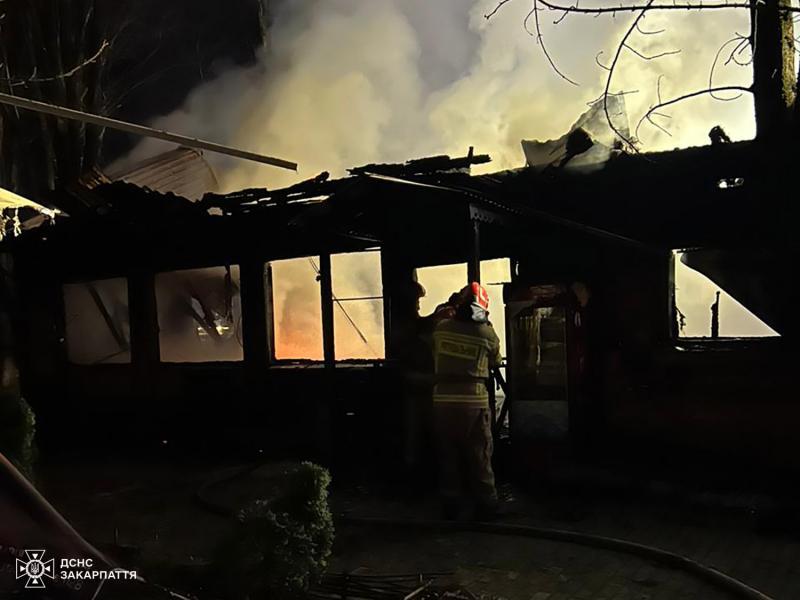 Займання у дерев’яній будівлі помітили працівники поліції охорони та сповістили рятувальників. На місце події було направлено три відділення двох пожежно-рятувальних частин міста Ужгород. Окрім ліквідації загоряння в самій споруді, важливо було не допустити перекидання полум'я на прилеглу паркову зону, тому рятувальники здійснювали постійне її проливання. Внаслідок пожежі вогнем знищено покрівлю, перекриття та обладнання на площі 170 кв. м. Проте вогнеборці не допустили повного знищення будівлі та поширення вогню на паркову зону. Загиблих та травмованих на місці події немає. Причина пожежі та збитки встановлюються.
