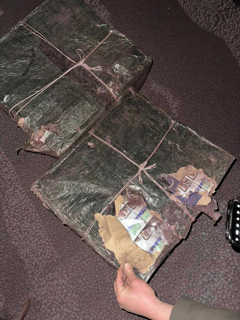 Для маскування контабандних тютюнових виробів ділки заздалегідь загорнули їх у чорну поліетиленову плівку, закопавши глибоко під шаром окатишів.