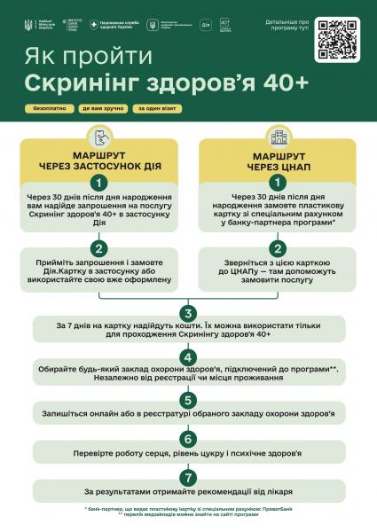 КНП «Ужгородський міський центр первинної медико-санітарної допомоги» запрошує усіх мешканців від 40 років і старших пройти базове медичне обстеження без скерування і черг, аби мати змогу вчасно виявити ризики хронічних недуг, контролювати стан здоров’я та запобігати ускладненням.