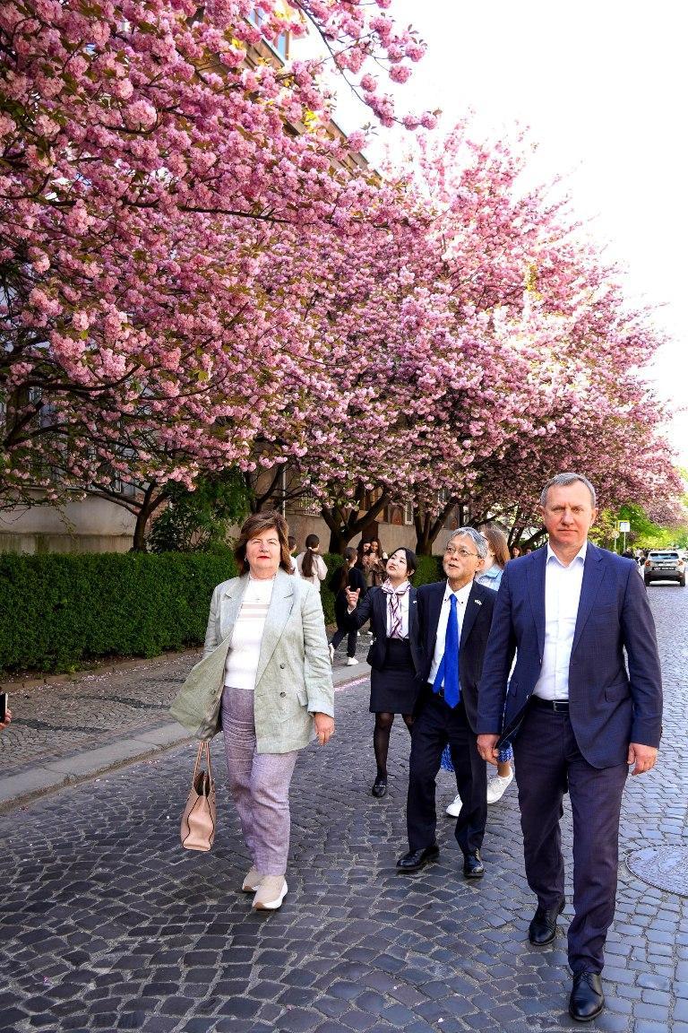 Перед відкриттям фестивалю голова Закарпатської ОВА Мирослав Білецький, міський голова Богдан Андріїв, його заступниця Марія Бадида разом із високоповажними гостями прогулялися центральною алеєю сакур, де ростуть найстаріші дерева. До речі, майже 10 років тому Японія подарувала нашому місту саджанці сакури, які квітнуть на проспекті Свободи.