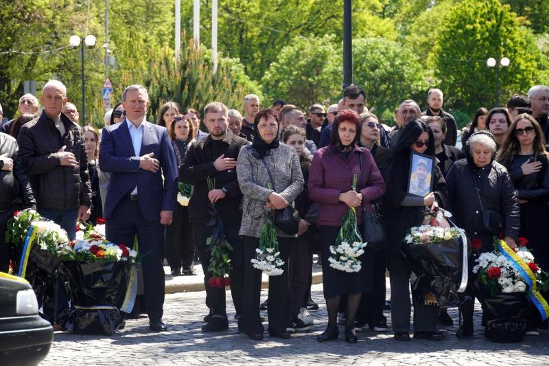 Чин похорону відбувся сьогодні на площі Народній. Віддати останню шану Герою прийшли рідні, близькі, друзі, колеги, побратими й бойові товариші, міський голова Богдан Андріїв, багато містян.
