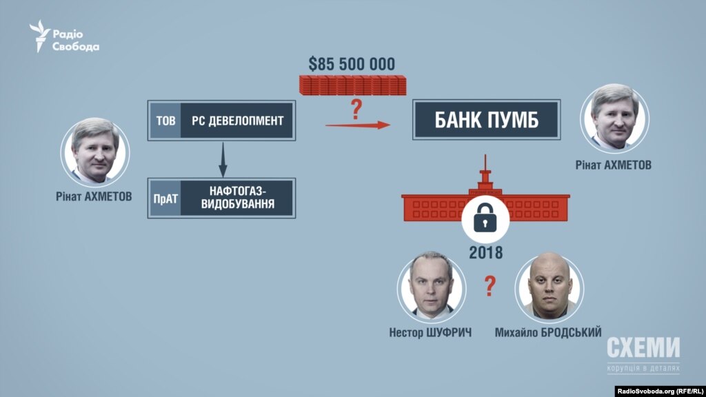 Більше того, у реєстрі судових рішень журналісти «Схем» знайшли інформацію, що фірму «РС Девелопмент» використовували службові особи компанії «Нафтогазвидобування» для виведення коштів за кордон. «Нафтогазвиобування» також контролюється Рінатом Ахметовим через ДТЕК.