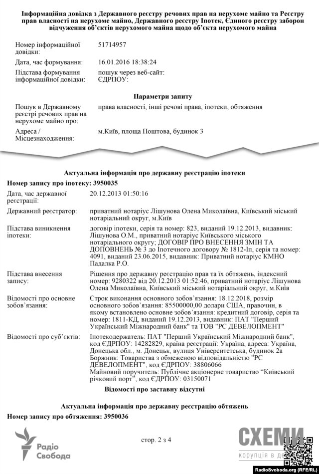 «Таким чином «РС Девелопмент», повязана із Ахметовим через «Нафтогазвидобування», є боржником перед банком ПУМБ із групи СКМ того ж Ахметова. А у заставі – будівля річкового вокзалу. Чи залишиться вокзал у власності Шуфрича і Бродського, залежить від того, чи віддасть сумнівна компанія з орбіти Ахметова 85,5 мільйона доларів банку з орбіти Ахметова», – підсумовують журналісти.