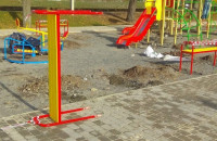 Сьогодні вночі невідомі витягли забетоновану лавицю, спробували понівечити гойдалки та турніки.