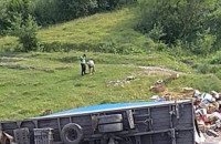 На Закарпатті водій фури не впорався з керуванням і "злетів" з гори