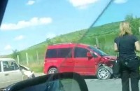 На в'їзді в м.Берегово (Закарпаття) сталася ДТП за участі двох автомобілів з номерами української реєстрації.