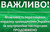 Державна прикордонна служба України зазначає, можливість перетину кордону на виїзд за межі країни громадянами України за паспортом громадянина України (внутрішній паспортний документ) продовжено.