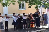 Учні та викладачі музичної школи № 1 імені П.І.Чайковського під керівництвом Олени Охрим сьогодні просто неба на вулиці Августина Волошина вітали жителів та гостей Ужгорода з його 1128-ю річницею.