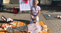 Надавати першу допомогу вчили охочих волонтери товариства Червоного Хреста на Закарпатті. На площі Театральній вони показували, як робити штучне дихання і приводити людей до тями. Захід організували до Всесвітнього дня надання першої медичної допомоги, — розповіла Суспільному медична тренерка Маріанна Кожанова. Його відзначають щороку у другу суботу вересня.