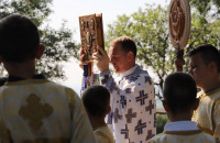 Біля давньої закарпатської святині з урахуванням соціальної дистанції разом із настоятелем храму отцем Богданом Савулою сьогодні молилися за здоров'я ужгородців, мир і спокій краю та України.