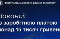 - Знайти роботу із зарплатою понад 15 тисяч гривень допоможуть у Закарпатській обласній службі зайнятості