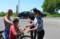 В рамках заходу інспектори відділу безпеки дорожнього руху спілкувались з дітьми - пішоходами, велосипедистами, розповіли про правила поведінки на дорозі та кожному подарували світловідбиваючі стрічки