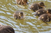 Поруч з двома красенями-лебедями на озері вже давно живуть і дикі качки.