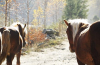 Ось так після важкої праці – трелювання лісу повертаються коні додому.