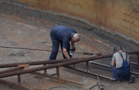 Ужгородський водоканал уже завершує відновлення мулошкреба – обладнання первинного відстійника каналізаційних очисних споруд водоканалу. Виконано зварювальні роботи, проводять гідроізоляцію стальних конструкцій.