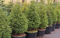 Півсотні ялинок в горщиках підготували на продаж у Великобичківському лісовому господарстві на Рахівщині. Середня вартість метрової ялини – 520 гривень.