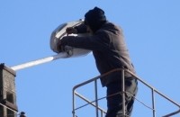 Сьогодні в Ужгороді працівники підприємства «Закарпателектробуд» відновлюють лінії вуличного освітлення на вулицях Університетській, Сливовій, фарбують опори та встановлюють на них цоколь на вулиці 8 Березня.