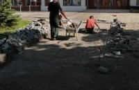 Працівники КБК сьогодні в Ужгороді викладають ФЕМ-плитку на тротуарах вулиці Будителів, ставлять ФЕМ-плитку, поребрики, бордюри, облаштовують зливоприймальну каналізацію на вулиці Можайського.