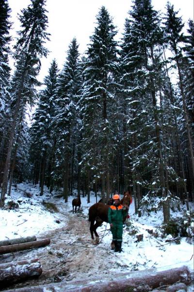 Разом з тим ці розумні та сильні створіння досі виручають лісівників на тих ділянках, де часом і трактору не пройти або не зовсім доцільно посилати потужну машину для вивозу декількох хлистів.
