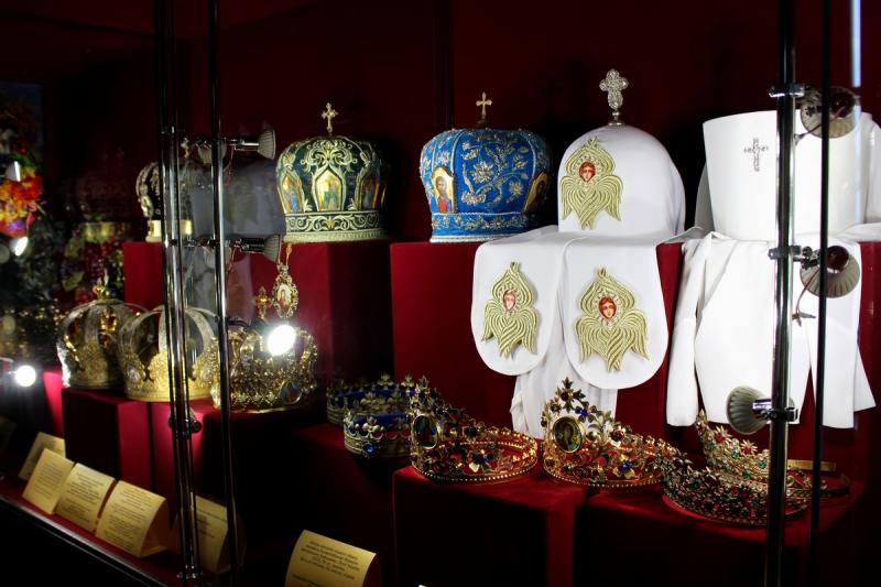 Колекція налічує 70 експонатів – вінців, корон, головних уборів духовних і світських лідерів. Близько третини з них – оригінальні експонати (переважно – митри патріархів різних конфесій). Решта ж – реконструкції та копії, з яких 99% відтворені зусиллями українських майстрів за давніми технологіями – візантійськими, китайськими, європейськими. Загалом, над проектом працювали більше сотні фахівців упродовж майже 15 років.