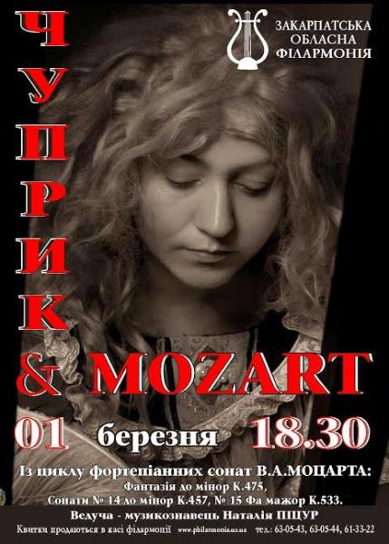 Торік наша піаністка знову розпочала масштабний проект, цього разу присвятивши його творчості В.А.Моцарта. Впродовж концертного сезону виконавиця планує зіграти всі фортепіанні сонати маестро. Тож 1 березня відбудеться п’ятий концерт із цього циклу. Програму складуть Соната №14 Фа мажор, Соната №15 до мінор та Фантазія до мінор В.А.Моцарта.